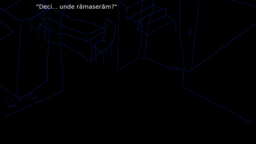 RO: Interfața este cam de căcat din cauză ca am ales o rezoluție stranie pentru că sunt o persoanaă stranie. Oricum, nu e o problemă mare, este o poveste scurtă ce poate fi citită fără a trebui să faci save mult sau ceva.